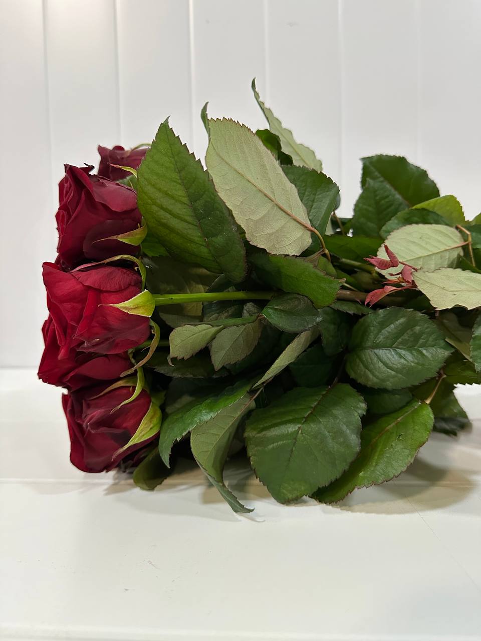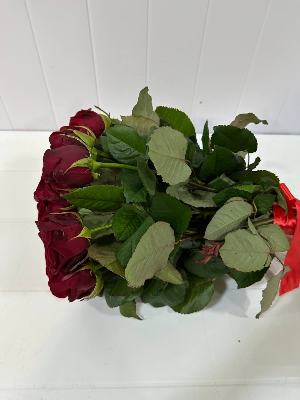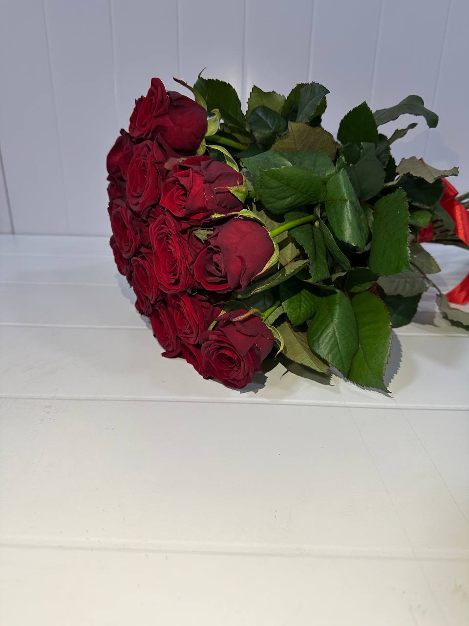25 бутонов создают объёмную, насыщенную композицию, которая производит яркое впечатление. Насыщенный цвет символизирует сильные чувства, преданность и восхищение.
